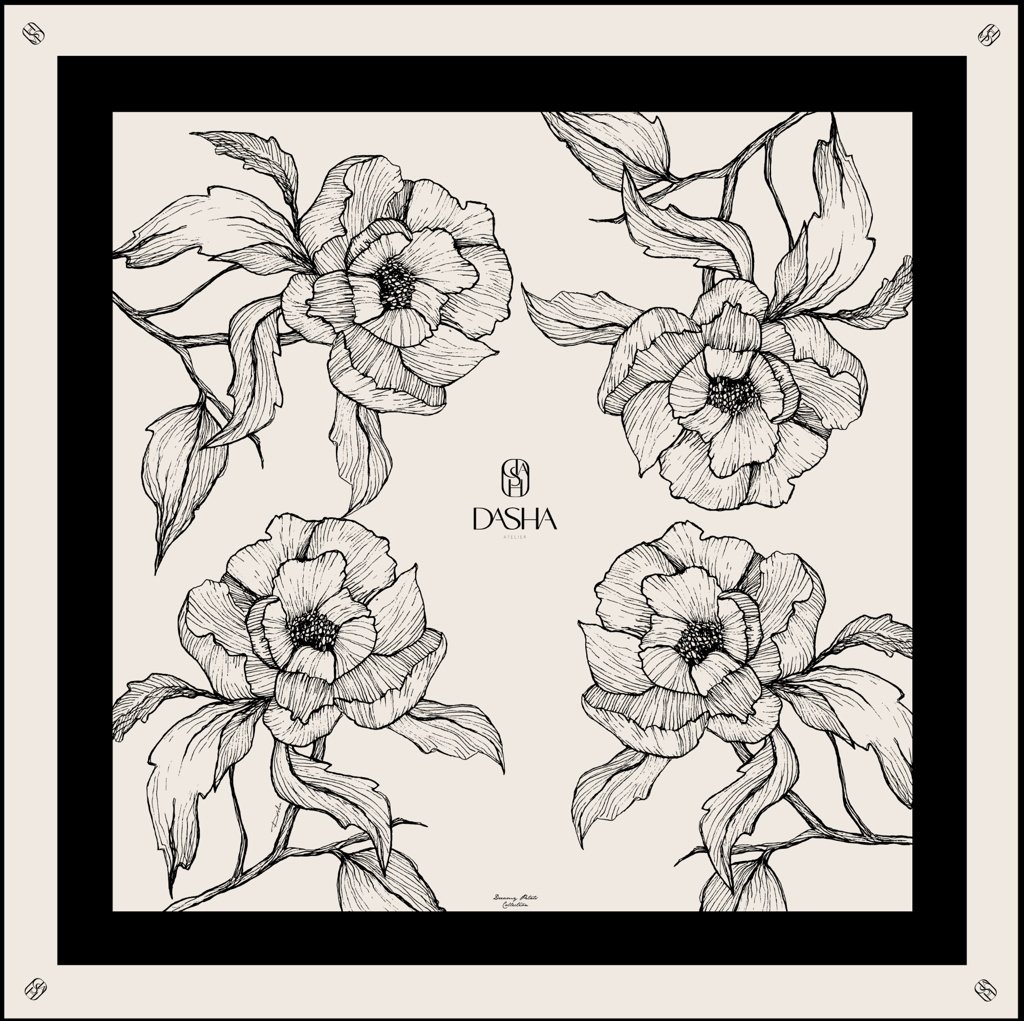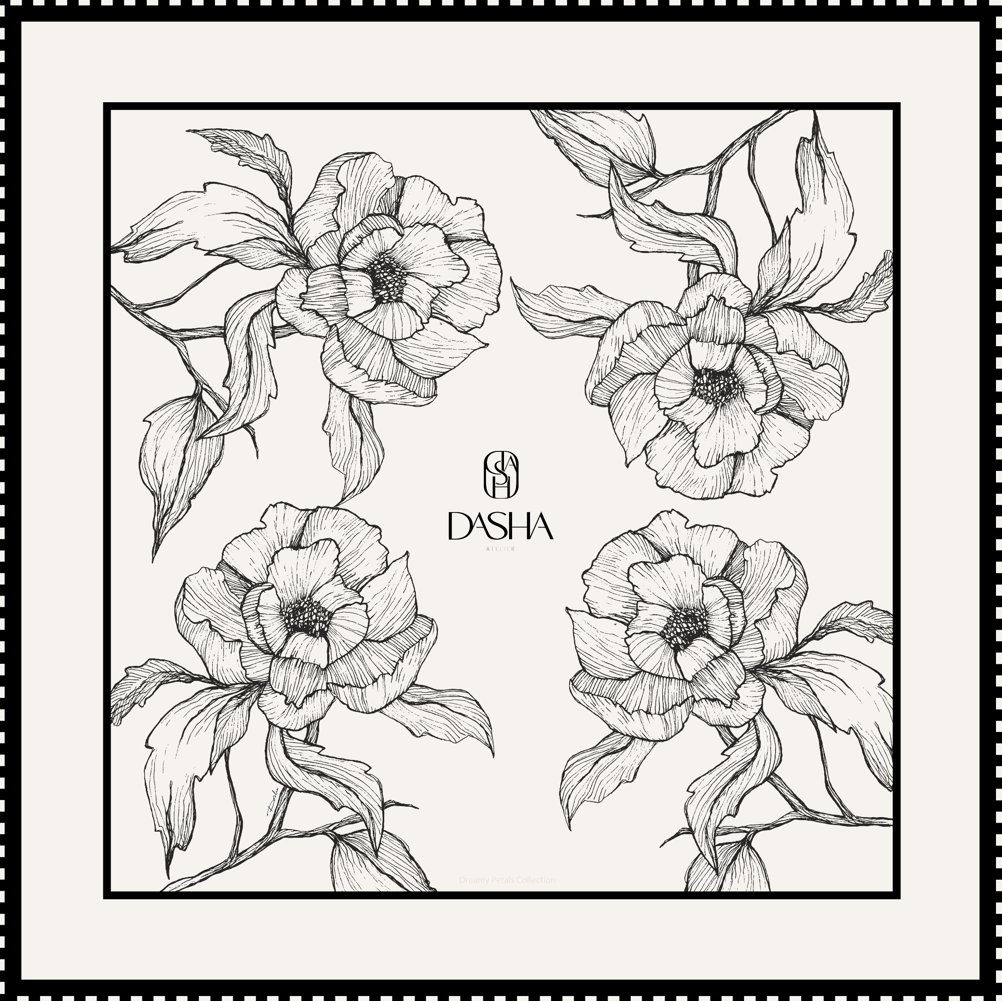 Izrađena od 100% twill svile 14 momma iz Italije, štampane u gradu Como-prestonici evropske svile, odiše suptilnom elegancijom. Sve ilustracije na DASHA maramama ručno su crtane, a zatim štampane na najfinijoj svili sa ručno rolanim ivicama. Svaka marama nosi ideju pokreta — između umetnosti i mode, između ličnog izraza i svakodnevnog rituala. Cvetni motivi, kao centralni elementi, ne prikazuju prirodu doslovno, već je reinterpretiraju: oni postaju znakovi senzibiliteta, ženstvenosti i neprolazne lepote. Boje se prelivaju, linije dišu, a površina svile postaje prostor u kome se susreću elegancija i emocija. Dizajnirana i ručno završena u Srbiji, DASHA dolazi uz luksuznu satensku torbicu pogodnu za sigurno čuvanje i putovanje.