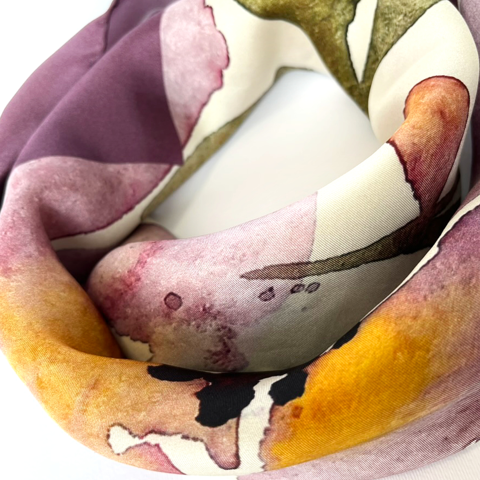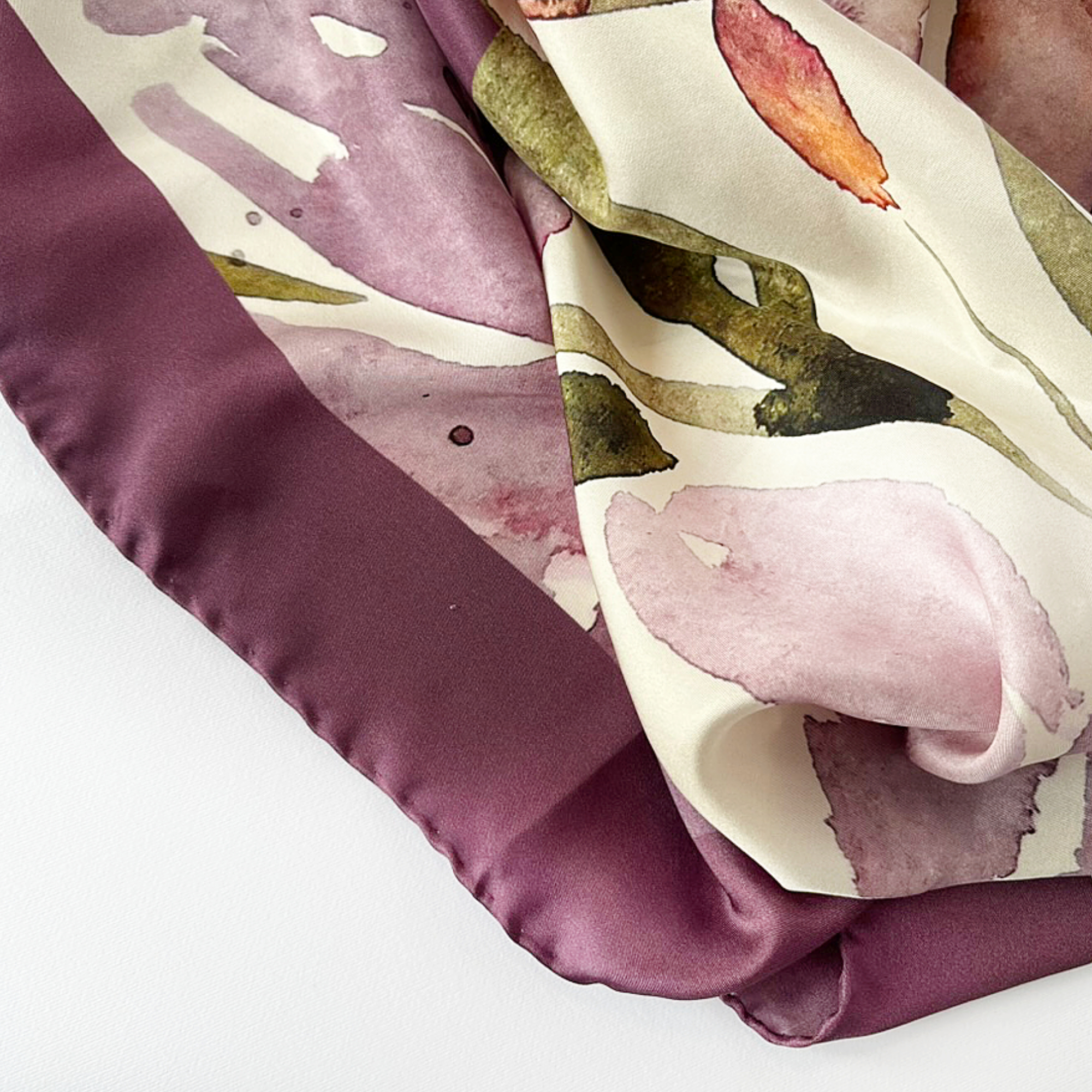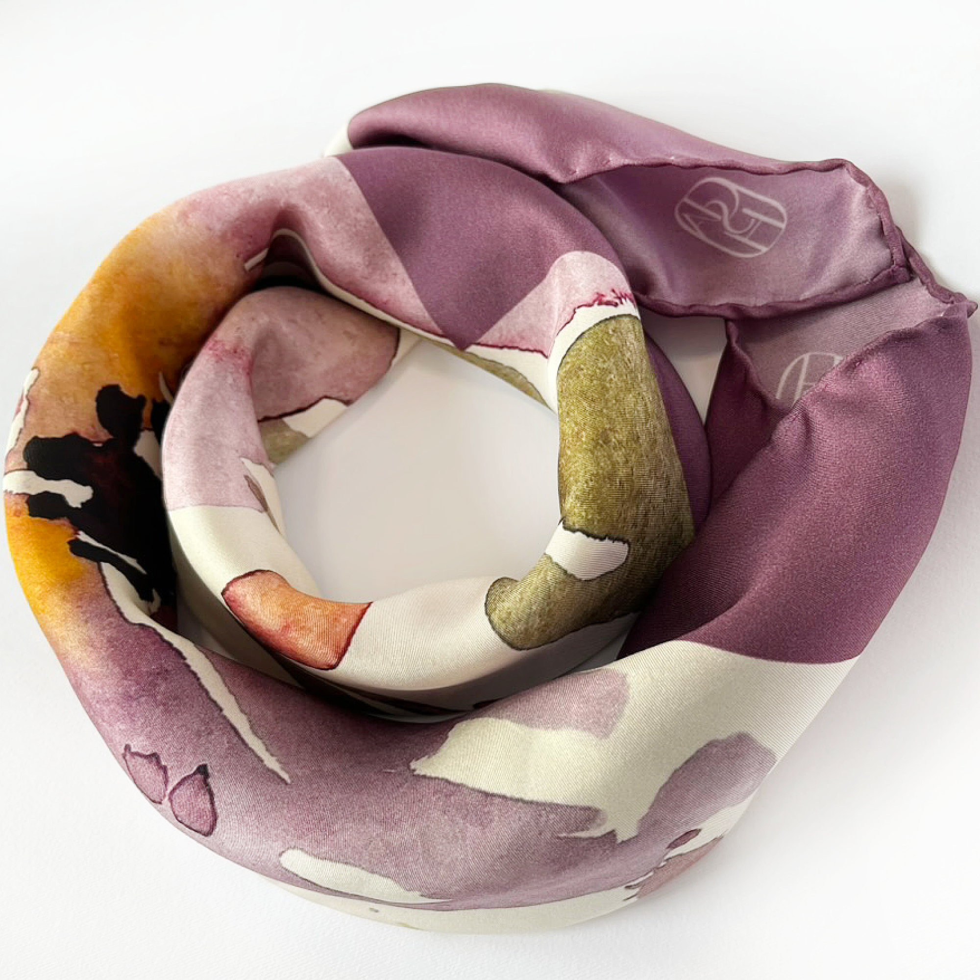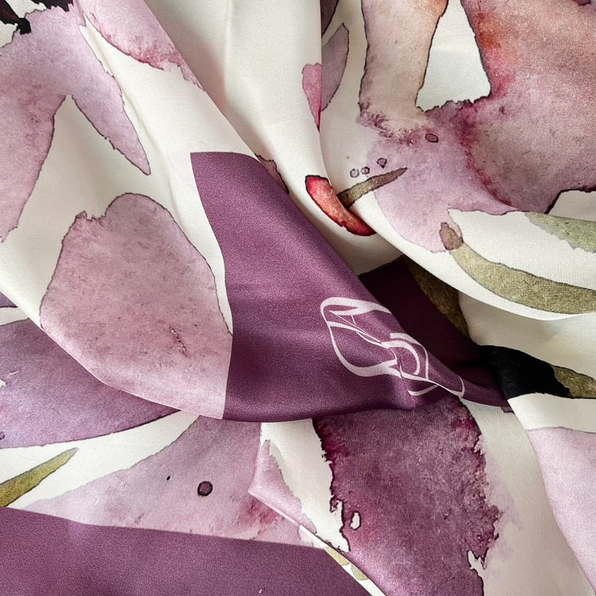 Crafted from 100% Italian twill silk (14 momme), printed in Como—the historic capital of European silk—it exudes refined elegance. All illustrations on DASHA scarves are hand-drawn and then printed on the finest silk, finished with hand-rolled edges. Each piece embodies a sense of movement—between art and fashion, between personal expression and everyday ritual. Floral motifs, as central elements, do not depict nature literally, but reinterpret it: they become symbols of sensitivity, femininity, and timeless beauty. Colors flow, lines breathe, and the surface of silk becomes a space where elegance and emotion meet. Designed and hand-finished in Serbia, each DASHA piece comes with a luxurious satin pouch, ideal for safe storage and travel.